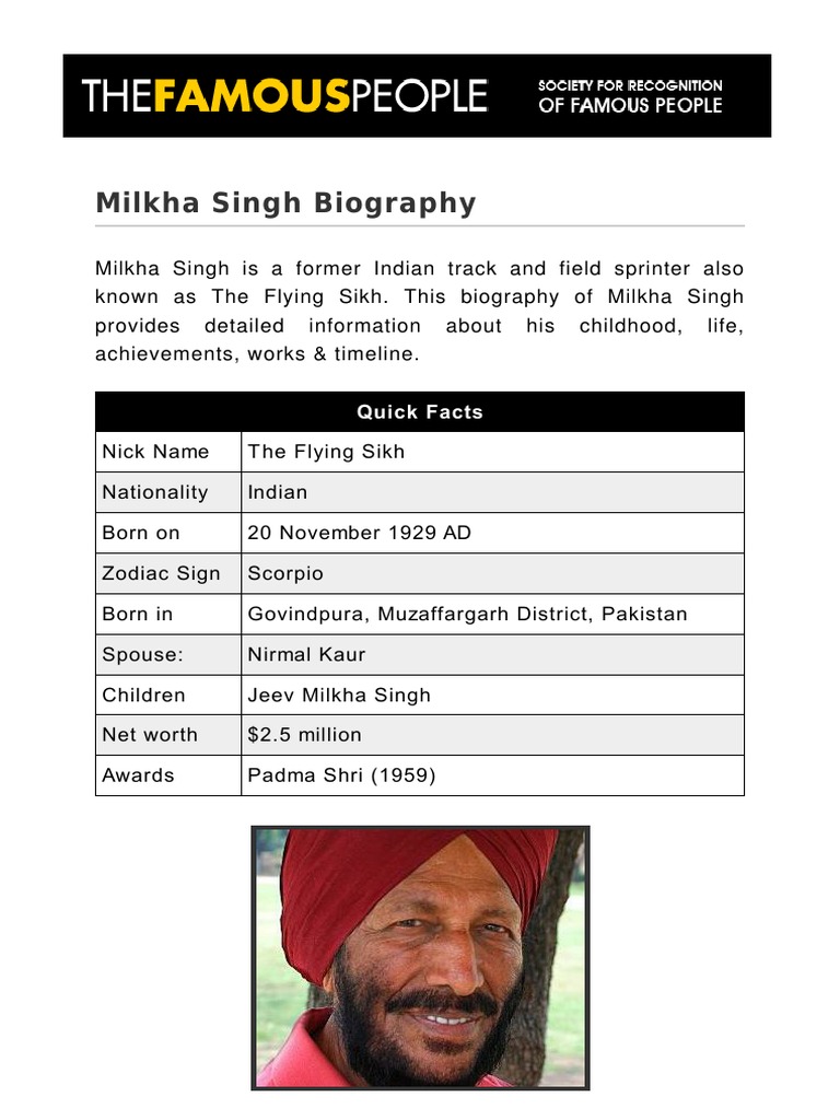 He has won four events on the european tour, becoming the most successful indian on tour. While playing on asian tour, european tour and japan tour has meant that jeev only played in five pgti. Milkha singh, the flying sikh, breathed his last in chandigarh on friday night. Jeev milkha singh (born 15 december 1971) is an indian professional golfer who became the first player from india to join the european tour in 1998. Singh turned professional in 1993 and his first professional win was at the 1993 southern oklahoma state open, a minor local event.